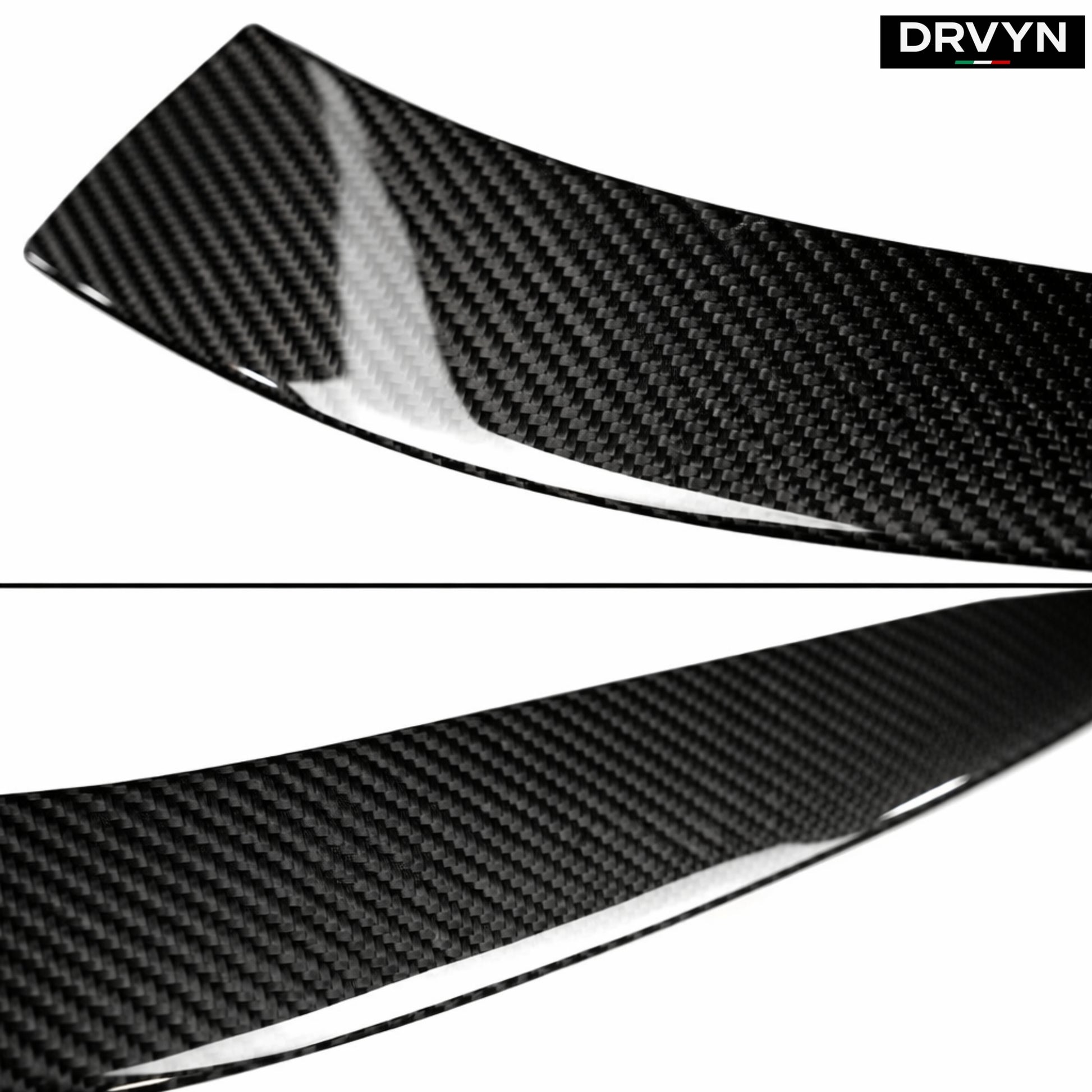 Constructed from real dry carbon fiber, these trim covers offer superior strength, reduced weight, and a crisp weave finish compared to traditional wet carbon. The dry carbon construction delivers a race-inspired texture and premium visual depth that elevates the front fascia without overwhelming the factory design.
