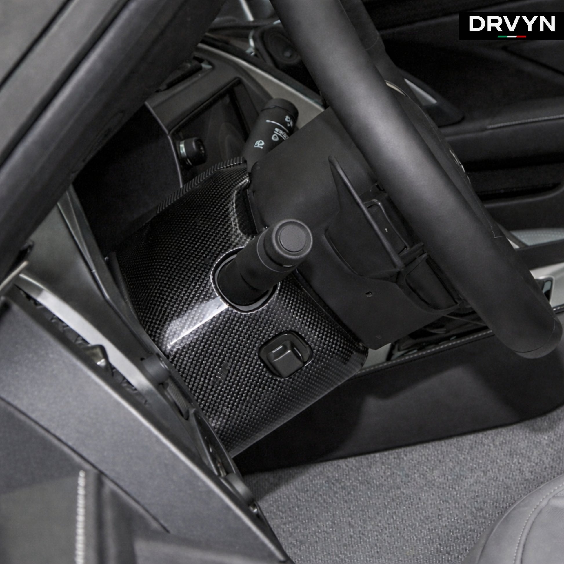 Enhance the interior of your Corvette C7 with the DRVYN Real Carbon Fiber Steering Wheel Base Cover Trim, a refined performance accent designed to add authentic motorsport styling to one of the most tactile areas in the cockpit. This premium cover trim upgrades the steering wheel base with genuine carbon fiber, bringing a high-contrast, race-inspired look to the driver’s control center.