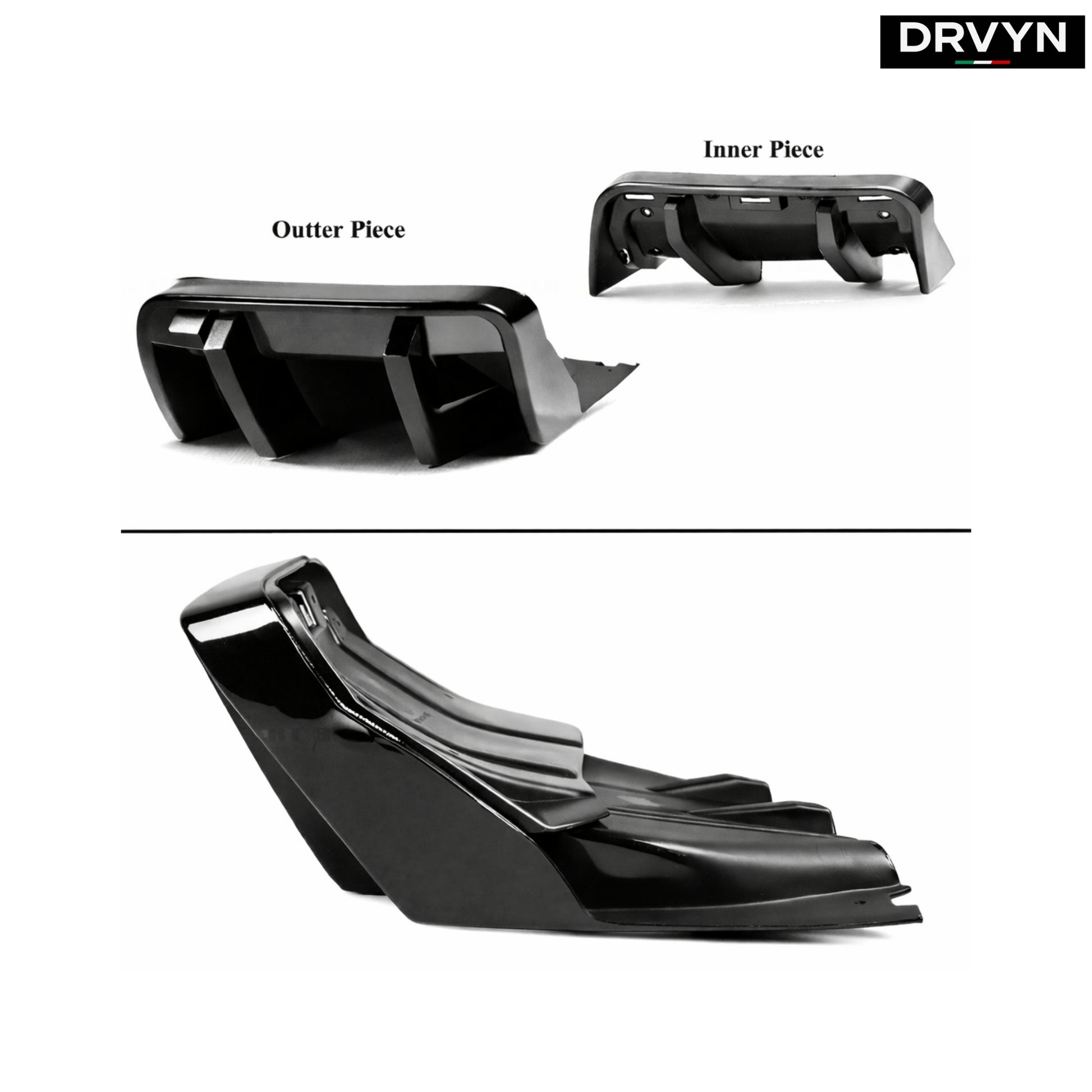 • 1 × Gloss Black Big Fin Rear Bumper Diffuser Kit